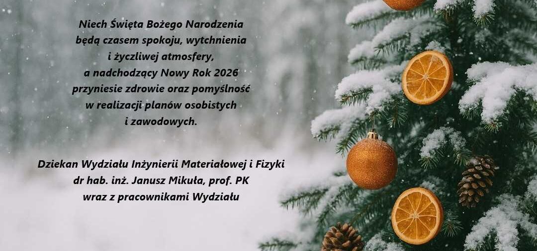 Dziekan Wydziału Inżynierii Materiałowej i Fizyki Politechniki Krakowskiej zawiadamia, iż w dniu 3 grudnia 2025…