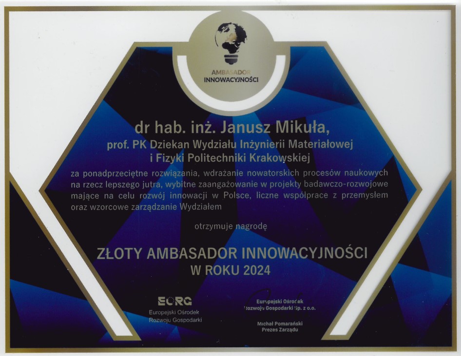 Zostały przyznane Nagrody Dziekana Wydziału Inżynierii Materiałowej i Fizyki dla wybitnych studentów – wyniki:- studia stacjonarne I stopnia:1/ Dominika Trӓger2/ Katarzyna Młyniec3/ Katarzyna Włosowicz- studia stacjonarne II stopnia:1/ Zuzanna Stępińska2/ Julia Sztrumpf Wręczenie dyplomów nastąpi podczas uroczystej Inauguracji roku akademickiego…