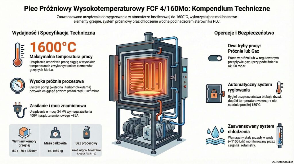 W Katedrze Inżynierii Materiałowej WIMiF PK eksploatowany jest zaawansowany piec próżniowy wysokotemperaturowy FCF 4/160Mo, umożliwiający prowadzenie procesów obróbki cieplnej do 1600°C w warunkach wysokiej próżni oraz kontrolowanej atmosfery gazów obojętnych. Urządzenie to jest szczególnie predysponowane do obróbki stopów tytanu stosowanych na implanty oraz kompozytów metaliczno‑ceramicznych, charakteryzujących się wysoką podatnością na intensywne utlenianie w warunkach konwencjonalnego nagrzewania, co pozwala na zachowanie ich właściwości strukturalnych i funkcjonalnych.