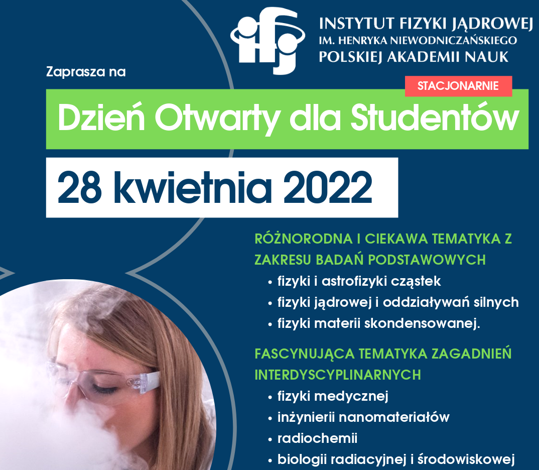 Szczegółowe informacje oraz program Dnia Otwartego w IFJ PAN https://ifj.edu.pl/edukacja/oferta-dla-studentow/dzien-otwarty/2022/